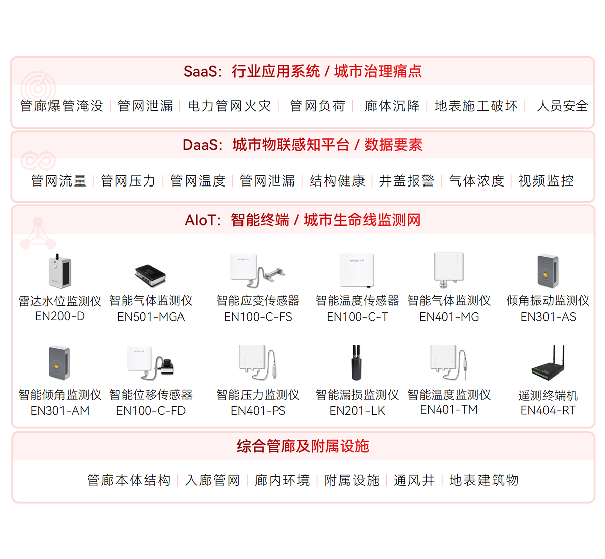 對(duì)管廊艙內(nèi)結(jié)構(gòu)的沉降、傾斜、震動(dòng)和裂縫,管廊地表結(jié)構(gòu)沉降、位移和傾斜,管廊艙內(nèi)硫化氫氣體、甲烷氣體、溫濕度和氧氣,集水坑水位和孔口蓋板等數(shù)據(jù)實(shí)時(shí)監(jiān)測(cè),同時(shí)接入視頻圖像,為管線風(fēng)險(xiǎn)監(jiān)測(cè)預(yù)警分析、廊內(nèi)環(huán)境及附屬設(shè)施監(jiān)測(cè)預(yù)警分析和管廊綜合監(jiān)測(cè)預(yù)警分析提供數(shù)據(jù)支撐。